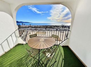 Este apartamento totalmente reformado y a estrenar, con licencia turística, se encuentra en una sexta planta y ofrece unas vistas excepcionales al mar desde todas las estancias principales. Al entrar, un espacio abierto y funcional nos da la bienvenida. A la derecha hay un baño completo con ducha, de un diseño moderno con acabados en negro mate -grifería, plato de ducha y toallero calefactable- que aportan elegancia y coherencia a todo el conjunto. La cocina, práctica y de líneas limpias, está completamente equipada con electrodomésticos integrados, lavavajillas, horno, microondas y placa de inducción. Ofrece una gran capacidad de almacenamiento y se integra perfectamente al espacio principal, que puede destinarse a comedor y sala de estar, manteniendo una sensación de amplitud y conexión visual con el exterior. La sala de estar-comedor goza de vistas panorámicas al mar gracias a los grandes ventanales y al acceso directo a la terraza esquina, que recorre toda la fachada del apartamento y permite disfrutar de todo el entorno. Todas las ventanas cuentan con persianas eléctricas, y la vivienda dispone de climatización reversible para garantizar el máximo confort durante todo el año. La habitación doble, también con salida al balcón, ofrece un ambiente tranquilo y luminoso, ideal para descansar con el sonido del mar de fondo. Además, está equipada con aire acondicionado independiente e instalación preparada para televisión, ofreciendo comodidad y funcionalidad. Como valor añadido, el apartamento cuenta con licencia turística vigente, un privilegio muy difícil de obtener en la zona, lo que lo convierte en una excelente oportunidad tanto para uso propio como para inversión. Un piso listo para entrar a vivir, con acabados de calidad, pensado para aprovechar al máximo la luz, el espacio y las vistas. Ideal para parejas o como segunda residencia junto al mar.