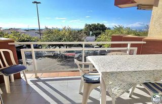 Le ofrecemos este bonito piso, ubicado en una de las mejores zonas de Roses: Salatar. En 1º línea, además de tener el paseo marítimo y la playa a unos metros, la residencia dispone de piscina y jardín comunitarios. En la 4º y última planta del edificio, se encuentra este agradable apartamento. Se compone de una cocina americana que da al salón comedor con salida a una primera terraza con vistas laterales al mar. Tiene dos habitaciones dobles cada una con salida a la terraza y un baño completo con ducha italiana. Subiendo las escaleras, se accede a una amplia terraza - solárium de 59m2 con toldo y trastero. Ideal para pasar momentos agradables en familia o con amigos, para tomar el sol, o simplemente relajarse disfrutando de las magníficas vistas al mar y las montañas. Equipado con aire acondicionado reversible, ventanas dobles y portero automático. Tiene licencia turística. Se vende con una plaza de parking privada en el parking subterráneo del edificio. ¡Vale la pena visitarlo! Ibi 505 y comunidad mensual 151€.