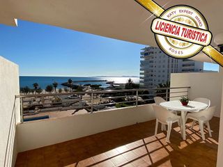 Primera línea de playa con bonitas vistas al mar: apartamento en perfecto estado con 1 dormitorio, terraza acristalada, comedor con sofá-cama, cocina equipada, baño con ducha. Acceso a la terraza también desde el dormitorio. Residencia a pie del paseo marítimo y la playa, con piscinas y jardín comunitarios. El apartamento dispone de licencia de alquiler turístico.