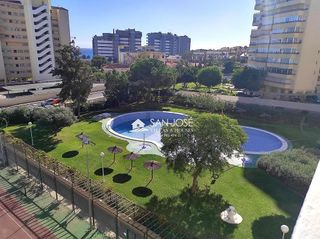 Piso en alquiler para larga temporada. Vivienda en perfecto estado, reformada y muy bien conservada. Se alquila amueblada y con electrodomésticos. Se distribuye en salón comedor, cocina independiente con galería y un dormitorio con armario empotrado. Tiene aire acondicionado en el salón y toldos. La urbanización tiene parking techado y numerado, piscina, zonas ajardinadas, pista de tenis y deportiva, barbacoa y club social. Zona residencial con supermercados muy cercanos, parada de tranvía y autobús y la playa está a 600 metros. Se requiere justificación de ingresos. No se admiten mascotas.