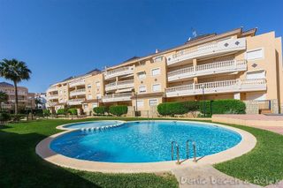 En la zona Las Brisas, a 200 m. de playa de arena con bandera azul, al lado de supermercado, restaurantes, bares, tiendas, farmacia,.. . ¿Qué más se puede pedir? Apartamento distribuido en recibidor con armario, salón comedor muy luminoso, cocina americana, lavadero, 2 dormitorios dobles y 2 baños completos, uno con bañera y el otro con ducha. Desde el salón comedor y el dormitorio principal tenemos acceso a una amplia terraza cubierta con vistas despejadas a la zona común. Aire acondicionado frío y calor en el salón comedor y en los 2 dormitorios, armarios empotrados, ascensor,.. . Urbanización tranquila con mucho encanto, con piscina comunitaria, jardín, duchas y zona de estacionamiento de bicicletas. Incluye parking cubierto dentro del complejo. Y todo a un paso de todo tipo de servicios y con parada de autobús para un fácil acceso al centro de Dénia. No deje pasar esta oportunidad y venga a visitarlo.