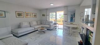 Se vende apartamento en primera linea de playa con impresionantes vistas al mar con 2 dormitorios dobles, 2 baños completos, 1 salón-comedor con salida a la terraza con orientación este, 1 cocina independiente con lavadero, plaza de parking y trastero. Dispone de aire acondicionado en todas las estancias. Ubicado en una 2ª planta sin ascensor, en un precioso residencial con jardines y piscina comunitaria, en el km 3 de las Marinas, rodeado de todos los servicios, ideal como inversión o para residir todo el año!
