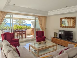 Estimado cliente, el precio indicado es para temporada baja y media, desde Noviembre hasta Marzo. Fuera de esa temporada los precios se acordarán según la duración de la estancia y los meses elegidos siempre con mínimo de 30 noches. Impresionante piso en el centro de Marbella, en primera línea de playa en la mejor zona de Marbella cerca del centro. Tiene acceso directo al paseo maritimo y es un edificio con mucha clase y con residentes de alto nivel. Justo al lado esta el famoso bar Capuccino y el restaurante japones Tahini ademas de muchas otras opciones de a lo largo de todo el paseo maritimo. El Hotel Gran Meliá Don pepe esta tambien al lado por lo que sus familiares y amigos estarán justo al lado del piso. El piso tiene 225 metros cuadrados, 3 dormitorios, 3 baños. Esta completamente amueblado, con cocina equipada. Tiene increibles vistas al mar y a la piscina. La urbanización tiene 2 piscinas, jacuzzi y gym, seguridad 24 horas. Tiene parking y trastero.