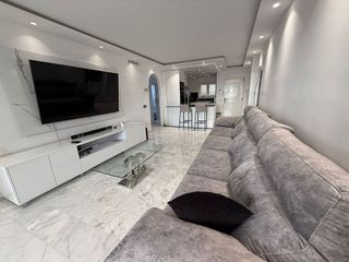 Te presentamos este magnífico apartamento ubicado en una de las zonas más céntricas y deseadas, justo en primera línea de playa. Este hogar es ideal tanto para familias que buscan un lugar permanente como para aquellos que desean disfrutar de una segunda residencia junto al mar. El apartamento ofrece impresionantes vistas laterales al mar, permitiéndote disfrutar de la belleza del paisaje costero desde la comodidad de tu hogar. Con un diseño funcional y acogedor, cuenta con tres amplias habitaciones que proporcionan el espacio necesario para el descanso y la privacidad. El salón-comedor es luminoso y espacioso, perfecto para compartir momentos inolvidables con familiares y amigos. La cocina, bien equipada y coqueta, se convierte en el lugar ideal para preparar deliciosas comidas. Además, la ubicación del apartamento es inmejorable. A pocos pasos encontrarás todos los servicios esenciales que puedas necesitar: paradas de autobús que facilitan el transporte público, hospitales cercanos para cualquier eventualidad, así como una variada oferta gastronómica en restaurantes locales. También hay farmacias y tiendas a tu disposición, lo que garantiza una vida cómoda y práctica. Para completar esta atractiva oferta, el edificio cuenta con una piscina comunitaria donde podrás relajarte y disfrutar del sol durante los cálidos días de verano. Además, se incluye una plaza de parking, lo que añade un gran valor a la propiedad al facilitar el estacionamiento en esta zona tan concurrida. No pierdas la oportunidad de vivir en este encantador apartamento frente al mar. ¡Contáctanos hoy mismo para más información o para programar una visita! Disponible a partir del 15 de diciembre [IW].