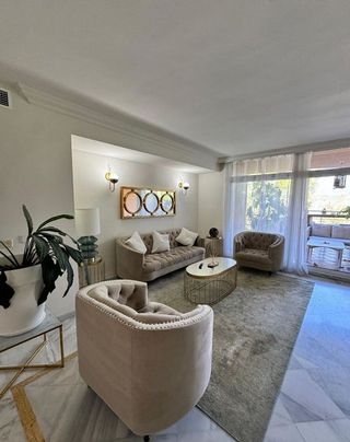 Amplio apartamento a solo 100 metros de Puerto Banús, una ubicación inmejorable tanto para vivir todo el año como para inversión, gracias a su alta demanda y excelente rentabilidad. La vivienda cuenta con 140 m² construidos, distribuidos en 3 dormitorios y 2 baños, uno de ellos en suite. Destaca su gran salón-comedor con chimenea, muy luminoso, con salida directa a una terraza acristalada, ideal para disfrutarla durante todo el año. La propiedad tiene orientación sureste y, al ser esquina, disfruta de una excelente entrada de luz natural durante todo el día, además de agradables vistas a la piscina y a las zonas comunes. Dispone de cocina amueblada y totalmente equipada, suelos de mármol y ventanas de aluminio, aportando confort y durabilidad. El residencial ofrece zonas comunes muy bien cuidadas, con gran zona ajardinada, piscina comunitaria, zona de parking comunitario y pequeño parque infantil, lo que lo convierte en un entorno ideal tanto para familias como para alquiler vacacional o de larga temporada. Una oportunidad única en una de las zonas más demandadas de Marbella.