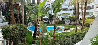 Apartamento en Marbella centro en segunda linea de playa en venta. Este coqueto apartamento está al lado de la zona mas lujosa de Marbella zona residencial, donde puedes encontrar magníficos restaurantes tanto en la playa cómo en los alrededores, situado al lado de todo lo necesario como farmacia, bancos, tiendas, médicos.. . y junto al famoso y maravilloso paseo marítimo de Marbella Este edificio tiene guarda de seguridad de dia, dos ascensores y piscina en comunidad, así cómo una plaza de parking y un trastero. La propiedad consta de cocina totalmente equipada semiabierta a un salón-comedor muy luminoso con acceso a una coqueta terraza con cristales de lumon para disfrutar en todas las estaciones del año. Consta de dos agradables dormitorios con armarios empotrados, así como de un baño completo exterior. Un piso muy luminoso donde prima la luz una vista parcial al mar, a los arboles y a algunos edificios emblemáticos de la zona, en general una vista muy agradable. Este apartamento se vende completamente amueblado y con un nuevo aire acondicionado calor y frio.