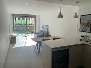 Apartamento moderno con jardín en Altos de Puente Romano - Milla de Oro de Marbella Este elegante apartamento con jardín se encuentra en un complejo residencial moderno y recientemente construido en Altos de Puente Romano, una de las zonas más prestigiosas de la Milla de Oro de Marbella, a poca distancia a pie del famoso hotel Puente Romano y de la playa. La vivienda ofrece un amplio y luminoso salón-comedor con acceso directo a una gran terraza parcialmente cubierta, equipada con zona de comedor, área de descanso y tumbonas. La cocina es independiente, totalmente equipada, y cuenta con un práctico lavadero. Dispone de tres dormitorios, uno de ellos en suite, mientras que los otros dos comparten un baño completo, además de un aseo de invitados. Uno de los grandes atractivos de la propiedad es su amplio jardín privado, ideal para disfrutar del clima mediterráneo durante todo el año. Incluye plaza de garaje y trastero en el parking comunitario subterráneo. El complejo cerrado, finalizado en 2018, ofrece piscina comunitaria, pista de pádel y un pequeño gimnasio.