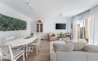 Situado a las afueras de Palma, presentamos este precioso piso en Cala Major, una zona conocida por su playa de arena blanca, aguas turquesas e impresionantes vistas. Esta fantástica propiedad, recientemente reformada y amueblada en exclusiva, se encuentra en la 3ª planta de un cuidado edificio con ascensor y parking comunitario. El luminoso piso tiene una superficie construida de aprox. 110 m² y, gracias a su excelente ubicación, ofrece vistas parciales al mar desde la terraza principal. El bonito piso consta de un estupendo salón-comedor, una moderna cocina americana de estilo minimalista con un trastero de aprox. 6 m², tres amplios dormitorios con armarios empotrados y dos baños, uno de ellos en suite. Otras características: Suelo cerámico, aire acondicionado y una plaza de aparcamiento cubierta en el parking comunitario. Cala Major se encuentra a sólo 4 km de Palma y está en las inmediaciones del Palacio de Marivent, la residencia de verano de la familia real española. La hermosa playa de Cala Major cuenta con aguas cristalinas y arena blanca y fina y se encuentra entre las populares zonas turísticas de Calvià y Palma.