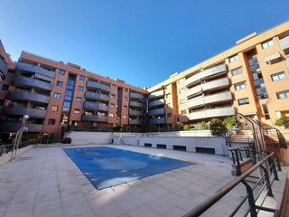 ALCOBENDAS. - Vivienda de 65 m², exterior, sin amueblar y lista para entrar a vivir. La vivienda dispone de salón, dos dormitorios y dos cuartos de baño completos. Cocina totalmente equipada con lavadora, frigorífico, horno, vitrocerámica y campana. Suelos de tarima, calefacción individual por gas natural, aire acondicionado, puerta blindada ignifuga, armarios empotrados en el pasillo y terraza exterior. La finca dispone de ascensor en el edificio, piscina comunitaria, jardín y patio. Plaza de garaje incluida en el precio. Transporte más cercano Metro Manuel de Falla a unos 500 metros, Cercanías Valdelasfuentes y línea de autobús interurbana.