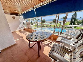 Magnífico apartamento en primera línea de mar, con espectaculares vistas frontales y en una de las mejores ubicaciones del Complejo Residencial Arensol. La vivienda cuenta con 2 dormitorios, 1 baño completo con plato de ducha, un luminoso salón-comedor con salida directa a la terraza desde la que podrás disfrutar de increíbles amaneceres. Dispone además de cocina office, galería, armarios empotrados, suelos de gres, ventanas de aluminio y puertas de sapelly. Se vende totalmente amueblado, listo para entrar a vivir. El prestigioso Residencial Arensol ofrece una amplia variedad de servicios y zonas comunes: - Piscinas para adultos e infantil - Club social con bar-restaurante - Club social infantil - Pistas de tenis y baloncesto - Zona de juegos para niños - Baños y duchas comunitarios - Amplias zonas ajardinadas - Servicio de conserjería - Varios ascensores Una oportunidad única para disfrutar del mar todo el año en un entorno privilegiado. ¿Quieres que también prepare una versión más corta o un anuncio para portales inmobiliarios?