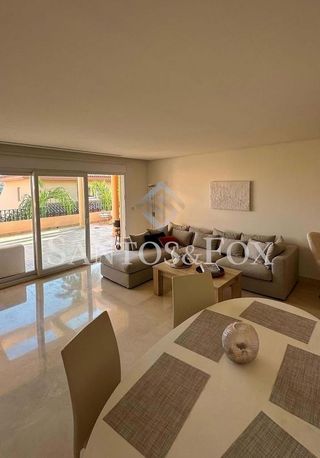 Esta magnífica vivienda combina una ubicación inmejorable con amplios espacios interiores y una encantadora terraza cubierta ideal para disfrutar del clima de la Costa del Sol durante todo el año. Situada en una de las zonas más demandadas de Nueva Andalucía, se encuentra a tan solo 8 minutos andando de Puerto Banús, con parada de taxis en la puerta, el Casino a escasos metros y dos supermercados a distancia peatonal, además de una excelente oferta de bares, restaurantes y servicios en Centro Plaza. Zona de gran demanda de alquileres en corta temporada a lo largo de todo el año tanto por veraneantes como golfistas el resto del año. Con tres habitaciones está distribuida en una sola planta esta propiedad cuenta con 140 m² interiores y una impresionante terraza de 38 m² con orientación Sur con vistas abiertas a los jardines de la comunidad y la piscina y otra terraza con acceso solo desde la habitación principal. La disposición escalonada del edificio asegura gran luminosidad a todas las viviendas del complejo aun estando en planta baja. Amplio salón-comedor con acceso directo a la terraza mediante un amplio ventanal incrementando la sensación de amplitud de la vivienda en su conjunto. La cocina incluye zona de desayuno y un gran lavadero. La vivienda dispone de tres dormitorios espaciosos, todos ellos con excelentes calidades y armarios empotrados. El dormitorio principal destaca por su amplitud y su vestidor, además de contar con un elegante baño en suite con ducha. Los otros dos dormitorios uno en suite y el otra con baño fuera que actúa como baño de invitados. Todos los baño modernos y perfectamente equipados, lo que convierte esta propiedad en una opción ideal tanto para familias como para quienes reciben invitados con frecuencia. El conjunto residencial ofrece un ambiente tranquilo y seguro, rodeado de extensas zonas verdes donde disfrutar de la calma y el aire libre. La urbanización cuenta con piscina comunitaria y jardines perfectamente cuidados, ideales para