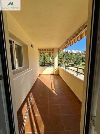 **Piso acogedor y soleado en urbanización con encanto** Descubre este encantador piso de 90 m² construidos, ideal para disfrutar de la vida en un entorno privilegiado. Con 2 amplias habitaciones equipadas con armarios empotrados, este hogar ofrece el espacio perfecto para relajarte. El luminoso salón-comedor se convierte en el corazón del hogar, donde la luz natural inunda cada rincón. Desde la amplia terraza de 12 m², podrás deleitarte con vistas parciales al mar y la montaña, un lugar perfecto para disfrutar de tus momentos al aire libre. La cocina independiente está totalmente equipada, lista para que prepares tus platos favoritos. Además, contarás con 2 plazas de garaje y un trastero de 4,5 m², lo que añade comodidad y funcionalidad a tu día a día. Los cerramientos exteriores de PVC con doble acristalamiento Climalit garantizan un aislamiento óptimo, mientras que el aire acondicionado centralizado te proporcionará el clima ideal durante todo el año. Ubicado en una urbanización que cuenta con un campo de golf de 18 hoyos, pistas de tenis y pádel, así como 5 piscinas para adultos y 5 infantiles, tendrás acceso a una variedad de actividades recreativas. El gimnasio y el club social con bar-cafetería son perfectos para disfrutar de momentos de ocio. La ubicación es inmejorable, a solo 2,5 km de la playa y cerca de hospitales, supermercados y colegios. ¡No pierdas la oportunidad de vivir en este maravilloso piso!