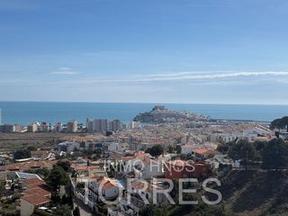 Tenemos el privilegio de ofrecer a la venta este apartamento de clase superior ubicado en Peñíscola, la joya de la Costa Azahar. Situado dentro de un pequeño residencial (ocho apartamentos), que se encuentra en lo alto de la conocida colina "Las Atalayas", esta vivenda singular ofrece lo que todo el mundo sueña: amplios espacios, gran confort, diseño, calidad y vistas incomparables.   Desde la calle, un moderno ascensor acristalado nos conduce a la entrada del apartamento, que nos recibe en un vestíbulo que ya denota el buen gusto que impera en toda la casa; de ahí pasamos a la zona noble de la vivienda, un amplio espacio formado por la cocina, el comedor y el salón: esta zona disfruta de gran luminosidad producida por sus puertas acristaladas, que dejan ver la el embriagador azul del mar a través de la terraza y el acogedor jardín lateral que refresca los sentidos. Una vez en la terraza, nos quedamos sin habla ante las increíbles vistas que, de norte a sur, nos ofrecen el Delta del Ebro, el mar Mediterráneo, la playa norte de Peñíscola, el afamado Castillo de Peñíscola, su casco antiguo, el mar de la Costa Sur de Peñíscola y el Parque Natural de "La Sierra Irta". El sol a raudales y el silencio. un placer para los sentidos. Esta magnífica vivienda cuenta con dos dormitorios amplios con salida al exterior (uno, el principal, a la terraza, el otro al jardín), más un tercer dormitorio para invitados. Dos baños, uno de ellos incorporado al dormitorio principal y un cuarto de máquinas / lavadero con el acumulador de agua caliente solar completan la distribución de este apartamento sin igual. El residencial cuenta con una preciosa piscina comunitaria, ascensor, con una zona con las placas solares que alimentan cada una de las ocho viviendas y con un parking en el que este apartamento cuenta con dos plazas privadas. Esta magnífica vivienda cuenta con dos dormitorios amplios con salida al exterior (uno, el principal, a la terraza, el otro al jardín), más un tercer dormit