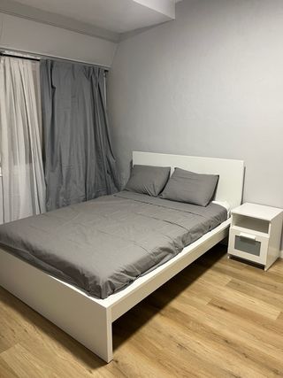 Habitación en piso espectacular con acabados modernos. SOLO SE ALQUILA A CHICOS - Cama doble con cabecero tapizado. - Mesita de noche blanca. - Cómoda blanca con espejo. - Ventilador de techo con luz. Vivienda en urbanización sin piscina pegado a los juzgados de alicante, tan solo a 300 m del corte inglés y estación de ave con ascensor completamente reformada, ventanas climalit, suelos de tarima, aire acondicionado frío-calor individual en la habitación más en zonas comunes, cama de 1,50 con canapé, armario emp y mesita,sin contrato de trabajo no molestes,solo se alquila a personas con contrato de trabajo demostrable