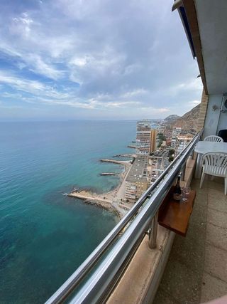 Descubre este magnífico apartamento en primera línea de la Playa de San Juan (Alicante), una ubicación privilegiada para disfrutar del Mediterráneo en su máxima expresión. Situado en una octava planta, este luminoso apartamento de 1 dormitorio ofrece unas vistas abiertas y espectaculares al mar, abarcando toda la Playa de San Juan y alcanzando la bahía de Benidorm. Su balcón de aproximadamente 8 m² es uno de sus grandes atractivos: un espacio amplio donde cabe cómodamente una mesa para varias personas, ideal para desayunos al sol, comidas al aire libre o veladas inolvidables con el sonido del mar como protagonista. La vivienda se encuentra en la Avenida Países Escandinavos nº 5, dentro de la conocida Urbanización Texas, en pleno corazón de la Playa de San Juan. Una zona consolidada, viva y perfectamente comunicada, donde todo está a un paso: supermercados, panaderías, restaurantes, cafeterías, farmacias, centros médicos y todo tipo de comercios y servicios. La excelente conexión mediante el TRAM Metropolitano permite llegar cómodamente al centro de Alicante, al Cabo de las Huertas, El Campello o incluso Benidorm, sin necesidad de coche. Además, varias líneas de autobús complementan la oferta de transporte público de la zona. La Playa de San Juan, una de las mejores playas urbanas de España, ofrece arena fina, aguas limpias y una amplia gama de servicios: alquiler de hamacas y sombrillas, chiringuitos, restaurantes frente al mar, zonas deportivas, juegos infantiles, paseos marítimos y vigilancia durante todo el año. Todo ello la convierte en un entorno ideal tanto para vivir todo el año como para disfrutar de estancias vacacionales. Una oportunidad única para quienes buscan vistas privilegiadas, ubicación inmejorable y calidad de vida frente al mar.