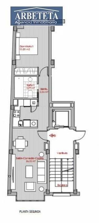 Esta vivienda se encuentra en la planta segunda de un edificio de reciente construcción, ubicado en una zona residencial tranquila y bien conectada, con fácil acceso al centro de la ciudad y rodeada de todos los servicios necesarios para una vida cómoda: supermercados, centros educativos, farmacias, zonas verdes y transporte público. Su entorno cuidado y en crecimiento la convierte en una excelente opción tanto como vivienda habitual como inversión. Con una distribución funcional y luminosa, la vivienda cuenta con un amplio salón-comedor con cocina integrada de 25,31 m2, pensado para disfrutar de un espacio abierto, moderno y acogedor. El dormitorio, de 13,08 m2, dispone de armario empotrado y se conecta con un baño completo de 3,77 m2, que combina comodidad y diseño actual. El acceso a la vivienda se realiza a través de un vestíbulo privado que comunica directamente con la escalera del edificio, aportando privacidad y facilitando el día a día. La vivienda ha sido diseñada para aprovechar al máximo la luz natural y optimizar cada metro cuadrado, con espacios bien conectados y acabados contemporáneos. La cocina, abierta al salón, favorece un ambiente social y funcional, ideal para el ritmo de vida actual. En cuanto a las calidades, la vivienda ofrece materiales duraderos y eficientes, con preinstalación para sistemas de climatización, carpintería moderna y un diseño interior cuidado hasta el último detalle, garantizando confort, estilo y bajo mantenimiento. Una oportunidad ideal para quienes buscan una vivienda moderna, bien ubicada y lista para entrar a vivir. ¡No dudes en llamarnos y venir a conocerla en persona!