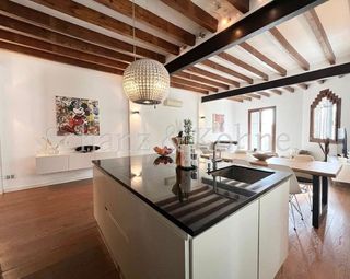 Elegante piso antiguo con aire histórico y lujo moderno en Inca, Mallorca Tipo de propiedad: Condominio Planta: 2ª planta Superficie habitable: aprox. 140 m² Habitaciones: 3 (incl. 2 dormitorios) Año de construcción: 1909 Última reforma: amplia y elegantemente modernizado Situación: Inca, Mallorca Inca, Mallorca Características especiales: Edificio histórico, mobiliario de alta calidad, detalles de diseño, 3 balcones Descripción del inmueble Este excepcional piso se encuentra en la 2ª planta de un elegante edificio histórico de 1909, justo en el encantador centro de Inca, en Mallorca. Con unos 140 m² de superficie habitable, combina de forma impresionante el encanto de principios de siglo con el lujo moderno y un mobiliario elegante. El ambiente especial se percibe nada más entrar en el piso: los techos altos, los elementos de estilo originales y el tono cálido del suelo de madera noble crean una sensación única de vivir. El concepto de las habitaciones es abierto e inundado de luz. El amplio salón-comedor con cocina de diseño integrada impresiona especialmente por su elegancia y comodidad. Equipamiento destacado - Tres pequeños balcones que confieren al espacio vital un aire mediterráneo - Cocina abierta con exclusiva cocina equipada - Electrodomésticos Bosch de alta calidad - Elegante campana extractora de Swarovski como declaración de diseño - Elegante suelo de madera en todas las zonas de estar - Ventanas de madera con doble acristalamiento: el aspecto clásico se combina con la eficiencia energética moderna - Dos dormitorios, incluyendo una suite principal con: - Vestidor de planta abierta - Ambos cuartos de baño con lavabos de diseño italiano - Grifería de Grohe: elegante y duradera Ubicación Inca se encuentra en el corazón de Mallorca y, como la tercera ciudad más grande de la isla, es un lugar muy buscado para vivir para aquellos que valoran tanto la proximidad a la naturaleza y una muy buena infraestructura. El centro histórico de la ciudad con sus e