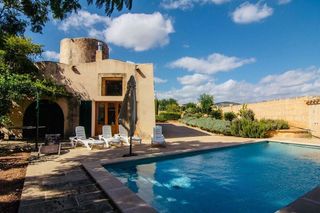 Disponible a partir de: Noviembre Este antiguo molino se encuentra en las afueras de Llucmajor. Los aprox. 300 metros cuadrados de espacio habitable se dividen en una casa principal y un piso de invitados. La parcela de 1.200 metros cuadrados está completamente vallada e incluye un jardín con árboles frutales y una piscina además de la casa. La casa principal consta de 2 dormitorios, 2 baños, uno de ellos en suite, cocina, despensa, una habitación adicional y el salón con chimenea. El apartamento de invitados tiene su propia entrada y consta de 2 dormitorios y un baño. Durante la renovación del molino, se renovó la torre y se conservó la antigua bodega.