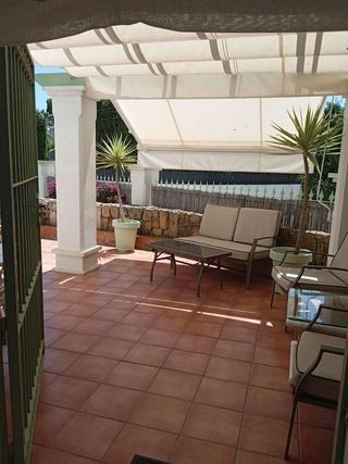 This cozy 100 m² ground floor apartment (60 m² interior + 40 m² private terrace) is for rent in a quiet and well-kept residential area, just a 4-minute walk from the beach. The recently renovated and fully furnished home offers 2 double bedrooms with built-in wardrobes, 1 modern bathroom with a shower, a spacious living-dining room with a sofa bed and Smart TV, and a fully equipped kitchen. Its private terrace, with a table, parasol, and barbecue, is perfect for enjoying the Mediterranean climate year-round. The residential area features a communal pool, a private parking space (2A), and Wi-Fi and water included in the price. Located in El Rosario/Costabella, one of the most sought-after areas of East Marbella, surrounded by popular beach bars (Bono Beach, Dune Beach, Los Tres Pepes), supermarkets, and cafes, and is just 10 minutes from the center of Marbella. Available for medium or long term rentals (minimum 1 month). Ideal for families, professionals, or couples seeking tranquility, comfort, and proximity to the sea in a privileged location. Se alquila acogedor bajo de 100 m² (60 m² interiores + 40 m² de terraza privada) ubicado en una urbanización tranquila y cuidada, a solo 4 minutos a pie de la playa. La vivienda, recientemente renovada y totalmente amueblada, ofrece 2 dormitorios dobles con armarios empotrados, 1 baño moderno con ducha, un salón-comedor amplio con sofá cama y Smart TV, y una cocina completamente equipada. Su terraza privada, con mesa, sombrilla y barbacoa, es perfecta para disfrutar del clima mediterráneo durante todo el año. La urbanización cuenta con piscina comunitaria, plaza de garaje privada (2A) y wifi y agua incluidos en el precio. Situado en El Rosario/Costabella, una de las zonas más demandadas de Marbella Este, rodeado de chiringuitos populares (Bono Beach, Dune Beach, Los Tres Pepes), supermercados, cafeterías y a solo 10 minutos del centro de Marbella. Disponible para media o larga temporada (mínimo 1 mes). Ideal para familias, p