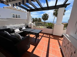 Apartamento con Vistas Panorámicas al Mar y la Montaña - Calahonda, Costa del Sol Se ofrece a la venta este elegante apartamento situado en una encantadora urbanización de estilo andaluz en Calahonda - El Albaicin, una de las zonas residenciales más consolidadas de la Costa del Sol. Una propiedad ideal para quienes buscan tranquilidad, privacidad y un auténtico estilo de vida mediterráneo. La vivienda dispone de dos amplios dormitorios y dos baños, diseñados para ofrecer el máximo confort. Desde el salón y el dormitorio principal se disfrutan impresionantes vistas abiertas al mar y a la montaña, que llenan los espacios de luz natural y crean una atmósfera serena y exclusiva. Uno de los grandes atractivos del apartamento es su magnífica terraza de 27 m², perfecta para relajarse, disfrutar de comidas al aire libre o contemplar el entorno privilegiado durante todo el año. El apartamento se encuentra en una urbanización cerrada y vallada, que garantiza seguridad, privacidad y un ambiente residencial muy cuidado. La comunidad dispone de plazas de aparcamiento comunitarias dentro del recinto, de uso exclusivo para los residentes. La urbanización no permite el alquiler turístico o de corta temporada, lo que asegura un entorno tranquilo y residencial, ideal como vivienda habitual, segunda residencia o refugio vacacional de calidad, lejos del turismo masivo. Una excelente oportunidad para adquirir una propiedad distinguida con vistas excepcionales en una de las ubicaciones más valoradas de la Costa del Sol.