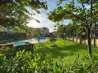 Fantástico apartamento de 3 dormitorios y 2 baños Les presentamos este maravilloso apartamento, amplio, luminoso y perfectamente distribuido. Al entrar, accedemos a un elegante hall recibidor que nos conduce a un gran salóncomedor. Este espacio destaca por un gran ventanal que se abre a una terraza cubierta orientada al suroeste, ideal para disfrutar del sol durante buena parte del día. La vivienda cuenta con una cocina muy amplia, completamente equipada con todos los electrodomésticos, además de un práctico lavadero independiente. La cocina dispone también de una mesa, por lo que es lo suficientemente espaciosa para comer cómodamente en ella. Los tres dormitorios cuentan con armarios empotrados. El dormitorio principal dispone de baño en suite, y ambos baños están equipados con platos de ducha. El apartamento está decorado con mucho gusto, ofreciendo un ambiente acogedor y elegante. En cuanto a las zonas comunes, la urbanización dispone de una amplia zona ajardinada, un parque infantil con columpios y área de juegos, así como una zona deportiva con campo de fútbol. Cuenta además con una gran piscina comunitaria con acceso adaptado para personas mayores y con movilidad reducida, así como una piscina infantil. La urbanización es cerrada y privada, lo que ofrece mayor seguridad y tranquilidad.