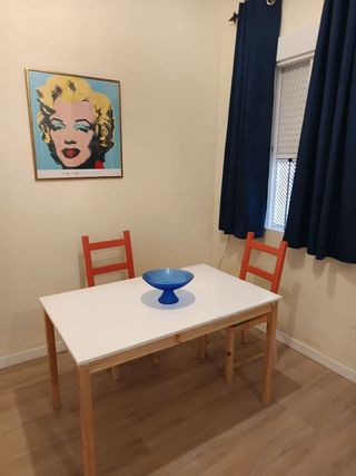 Inmueble de 59 m2 en zona muy tranquila y bien comunicada. El piso está distribuido de la siguiente manera, al entrar podemos acceder al salón que tiene la cocina abierta con una isla donde poder comer. La cocina está totalmente equipada con todos los electrodomésticos necesarios y con mucho espacio para almacenar, las dos ventanas que hay en esta estancia, salón y cocina hace que sea luminosa. Desde el salón, se accede al cuarto de baño completo con plato de ducha y tambien con una ventana a la calle, y al dormitorio principal que dispone de dos armarios empotrados y acceso directo al patio privativo. El patio tiene un buen tamaño, tiene toldo y punto de agua, a parte de para disfrutarlo tambien es muy util para tender. Desde la entrada tambien se accede al segundo dormitorio que dispone de mucho espacio de almacenaje con un gran armario. El piso tiene los techos muy altos, lo que hace que de mucha sensación de amplitud y de luminosiadad. Aunque sea un bajo, está en una zona muy tranquila y calles poco transitadas. No se admiten mascotas. Si está buscando vivir junto a la Gran Plaza y Marques de Pickman, un barrio con todo lo necesario, comercios, farmacias, centros escolares.. . y perfecta comunicacion con cualquier punto de la ciudad mediante transporte público.