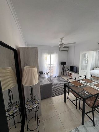 Acogedor piso de 1 dormitorio y 1 baño ubicado en una zona tranquila y bien comunicada. La vivienda cuenta con un salón-comedor luminoso con acceso a un pequeño balcón exterior. El salón dispone de un cómodo sofá cama, mueble de televisión, mesa de comedor y aire acondicionado. La cocina es americana y está completamente equipada, incluyendo frigorífico, microondas y lavadora, con abundante espacio de almacenaje. El dormitorio es amplio y luminoso, con ventana al exterior, cama de matrimonio y armario empotrado. El baño cuenta con bañer. La vivienda incluye aire acondicionado en el salón y se entrega amueblada, lista para entrar a vivir. Condiciones de alquiler (Contrato hasta 12 meses, sin renovación): Se verificará la viabilidad de pago mediante empresa de garantía. Se solicitará inicialmente: - Última nómina - Contrato laboral - DNI/NIE (ambas caras) - Autónomos: último IRPF y DNI/NIE Según la respuesta de la empresa de garantía: Si la respuesta es afirmativa: - 1 mes de alquiler - 1 mes de fianza - 1 mes de intereses inmobiliaria Si la respuesta es negativa se puede añadir avalista o pago adiccional: 1 mes de alquiler 3 meses de depósito (que irán a la empresa de garantía) 1 mes de intereses inmobiliria.