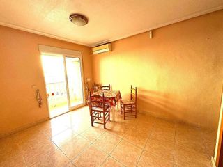 Amplio piso de 3 dormitorios en pleno centro de Torrevieja - ¡Listo para entrar a vivir! Se vende estupendo piso de 95 m² ubicado en el corazón de Torrevieja, a solo unos pasos del Mercadona y de la estación de autobuses, con todos los servicios al alcance. La vivienda cuenta con 3 dormitorios y 2 baños completos, ideal para familias o como inversión para alquiler vacacional. Dispone de un amplio y luminoso salón, perfecto para disfrutar en familia, y un patio privado con uso de terraza, que aporta un espacio exterior adicional muy práctico. Se vende totalmente amueblado, con ventiladores de techo en varias estancias y aire acondicionado en uno de los dormitorios, lo que garantiza el confort durante todo el año. Ubicado en una zona céntrica pero tranquila, este piso es una excelente oportunidad tanto para residencia habitual como para segunda vivienda. ¡No dejes pasar esta ocasión y solicita una visita hoy mismo! Planta: 1 de 4 SUMA/IBI (property tax): 270 € al añoCOMUNIDAD (Association fee): 40 € al mes.