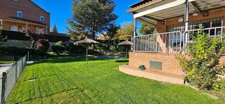 Estupendo chalet reformado situado en fantástica urbanización perimetralmente cerrada con vigilancia y magníficas zonas comunes: columpios, piscina, club social con restaurante.. . la vivienda tiene una reforma muy buena: toda la carpintería nueva con rotura de puente térmico, excelentes armarios, baños nuevos, cocina nueva. la distribución es la siguiente: Planta baja con hall (buen armario), salón con acceso a terraza-jardín, aseo, cocina con buen office para comer y tendedero. Planta primera con tres dormitorios, dos baños: los dormitorios tienen todos acceso a agradable terraza, son espaciosos, tienen muy buenos armarios (el principal espléndido vestidor). Atico diáfano ideal para oficina - sala de estar desenfadada. Sótano con garaje, salón, dormitorio con baño, aseo y leñera / trastero. Aire acondicionado y calefacción de gas natural por suelo radiante. Persianas motorizadas. Se alquila vacío con electrodomésticos.