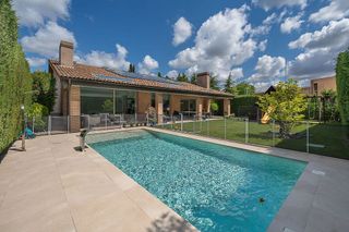 Excepcional chalet independiente totalmente reformado de 456 m² construidos con siete estancias o dormitorios. Parcela de 634 m² con precioso jardín muy cuidado y arbolado, piscina, cenador, barbacoa, horno en el exterior, caseta de fábrica para jardinería, cuarto de instalaciones, y leñera. En la planta principal encontramos un amplio vestíbulo con apertura al salón y comedor que tiene salida al bonito y amplio jardín por el porche. Además, despacho, cocina con zona office y aseo de cortesía. Salón con chimenea y comedor conectado con la moderna y reformada cocina. En la primera planta, el dormitorio principal con baño en suite, vestidor, y enorme terraza con vista al jardín y piscina. En el baño, bañera estilo jacuzzi, y cabina de vapor. Dos dormitorios adicionales con baño compartido. En la segunda planta se encuentra un enorme dormitorio con baño en suite y con terraza con vistas al jardín y a la piscina, y ventanal de cara al skyline de Madrid. En la planta baja o semisótano, un enorme espacio con luz natural para salón o dormitorio de invitados; otro salón con estufa tipo nórdica, y un dormitorio con grandes ventanas que puede ser utilizado para zona de servicio, hospedaje de invitados, o despacho. Garaje para un vehículo. Aire Acondicionado y bomba de calor por conductos, calefacción por gas natural por radiadores. Estufa nórdica cerámica de gran poder calorífico y una chimenea en el salón. Somosaguas es una de las urbanizaciones más exclusivas y prestigiosas de Pozuelo de Alarcón, a tan solo 15 minutos del centro de Madrid. En sus inmediaciones se encuentran los mejores colegios nacionales e internacionales de Madrid, como el British Council, el American School, el San Luis de los Franceses, y el Retamar. Se encuentra rodeada de clubes deportivos y campos de golf, y junto a la Casa de Campo, considerado el mayor parque de Europa. La zona tiene excelentes comunicaciones, tanto por transporte público, con autobuses y metro ligero, como por carretera co