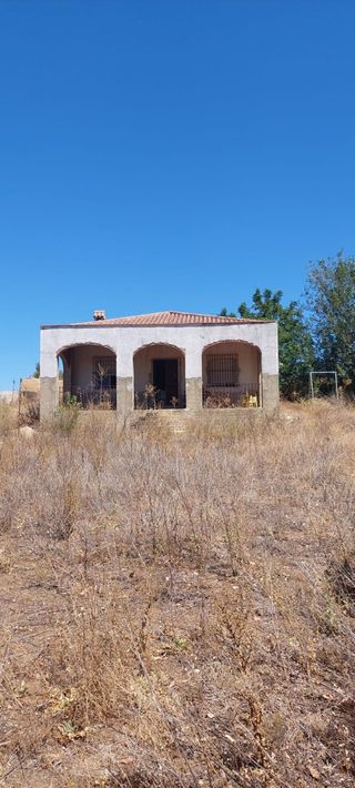 la parcela tiene una superficie 6.000m² la casa con dos dormitorios un baño cocina comedor y un salón con chimenea y un porche con algunos árboles frutales y olivos y pozo de agua buena.