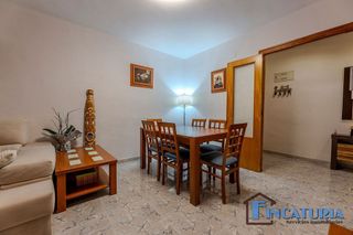 Piso en venta en el centro de Ribarroja, muy cerca del principio de la Avenida de la Paz, de 111 metros, 3 habitaciones, 2 baños completos con bañera, cocina con galería pisable interior, todas las dependencias con luz y ventilación directa, comedor con fachada a la calle. Plaza de garaje incluida en el precio. Finca con ascensor.