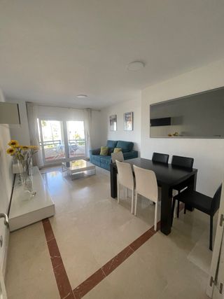 Alquiler de Larga Temporada - Apartamento con Vistas al Mar en Manilva (Coto Real) Disponible para alquiler de larga temporada (mínimo 12 meses), este moderno y luminoso apartamento de 112 m² se encuentra en el prestigioso complejo residencial Coto Real en Manilva, dentro de una urbanización cerrada y segura. La vivienda dispone de 2 dormitorios, 2 baños, un amplio salón, cocina totalmente equipada, lavadero y trastero. Se alquila completamente amueblada y equipada, con aire acondicionado frío/calor. Los dormitorios cuentan con persianas eléctricas, aportando un extra de confort. El apartamento ofrece terrazas parcialmente cubiertas y descubiertas con vistas al mar y a zonas verdes, ideales para disfrutar del clima de la Costa del Sol. Es un apartamento tranquilo y muy soleado, ubicado en una comunidad agradable y con vecinos respetuosos. Excelente localización con todos los servicios a poca distancia: colegio de primaria a 5 minutos, instituto a 10 minutos, supermercado, playa y el Puerto de la Duquesa con sus restaurantes y bares. Incluye plaza de garaje privada en aparcamiento subterráneo. La urbanización dispone de piscinas comunitarias y pista de pádel. Precio: 1.500 € / mes Gastos no incluidos (agua, electricidad e internet). Condiciones: - Fianza de 3 meses - Seguro de impago obligatorio - NIE/DNI en vigor e ingresos demostrables - Pago del alquiler únicamente por transferencia bancaria No fumadores (ni en el interior ni en las terrazas). Se admiten mascotas pequeñas bajo aprobación previa.