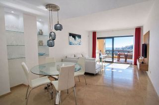 ¡Exclusiva de Naimar Homes! Apartamento en Manilva costa con vistas al mar En el corazón de Manilva costa, donde el Mar Mediterráneo se une con las montañas y los campos de golf de gran prestigio, está ubicado este apartamento que encarna la esencia del lujo discreto y el estilo de vida mediterráneo. Su amplio y cómodo interior está distribuido en dos grandes habitaciones, teniendo el dormitorio principal el baño en suite, vistas directas al mar y salida a la terraza principal, dos baños, cocina amueblada y equipada con salida al lavadero y un gran salón desde el que podrás ver el mar y acceder a la terraza principal, la cual, cuenta con parte cubierta y descubierta, por lo que, no solo podrás disfrutar de las vistas despejadas al mar, al golf y a la montaña, sino que, también, podrás tomar el sol durante casi los 365 días del año. También, incluye plaza de garaje y trastero, ubicados en la planta sótano del mismo edificio del que forma parte esta vivienda. Y, gracias a su orientación sur, cada estancia que la compone es bañada de la calidez de la luz natural durante todo el día. Además, está lista para instalarte debido a su estado impecable y a los materiales empleados en su construcción, así como, finos acabados como los suelos de mármol, los amplios ventanales y puertas correderas con acristalamiento doble climalit, la climatización mediante aire acondicionado frío- calor, hidromasaje en baño principal, amplios armarios empotrados en las habitaciones y la puerta de entrada de seguridad. Pero, este apartamento no es solo un lugar donde vivir, es un refugio de serenidad, es el bienestar convertido en hogar dentro de un residencial privado y cerrado con conserjería y videovigilancia 24/7, que pone a disposición de sus residentes piscinas, pistas de pádel, numerosas hectáreas ajardinas, zonas peatonales por las que pasear andando o en bici y zona de aparcamiento para los visitantes, lo que aporta un plus de comodidad a un entorno ya de por sí privilegiado. Y,
