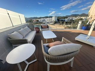Oportunidad única. Espectacular ático en alquiler todo el año. Lujoso apartamento en primera línea de aproximadamente 145 m² más una terraza en la azotea parcialmente cubierta, con impresionantes vistas al mar y orientación sur. Amplio salón con comedor y gran terraza. Tres dormitorios y tres baños en suite. Cocina moderna totalmente equipada. Suelos de mármol. Barbacoa. Aire acondicionado. Plaza de aparcamiento opcional. Piscina comunitaria. No se permite compartir piso, no se admiten mascotas y se requiere acreditar solvencia económica.