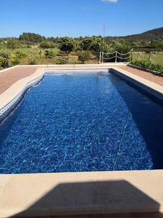 ALQUILER TEMPORAL de VERANO (6/7 meses) Casa muy luminosa y parcialmente recién reformada ubicada en el campo y sin vecinos entre S. Rafael y S. Antonio disponible para alquiler temporal. La vivienda consta de 7 dormitorios y 6 baños y esta dividida en dos plantas: Primera planta: - 3 habitaciones (2 con aire acondicionado) - 3 baños - salon y comedor - cocina - porche Planta baja: - 4 habitaciones (todas con aire acondicionado) - 3 baños (2 en suite) - porche La vivienda tiene también una cocina exterior abierta justo al lado de la piscina. El precio son de 8.500€/mes y el coste del alquiler no incluye los gastos de luz y el mantenimiento de la piscina. Los gastos de agua y de internet están incluidos. El alquiler se requiere en dos pago y la fianza es de un solo mes.