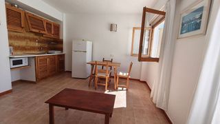 Cala de Bou – Frente a Kumharas Se alquila apartamento amoblado de 1 habitación en Cala de Bou, ubicado frente al famoso Kumharas, con vista al mar y excelente entorno. La vivienda cuenta con 65 m² construidos, distribuidos en: Sala cómoda y luminosa Cocina equipada Dormitorio Baño completo Terraza Amplio jardín privado de 120 m², ideal para disfrutar del aire libre, el sol y los atardeceres. ✔ Totalmente amoblado ✔ Zona tranquila y bien ubicada ✔ A pocos metros del mar ✔ Ideal para pareja o persona sola Excelente para quienes buscan comodidad, espacio exterior y una ubicación privilegiada en Ibiza