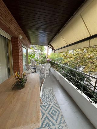 ALQUILER TEMPORADA, se precisa justificación de temporalidad. Planta baja con piscina, terraza-barbacoa y parking exterior, a cinco minutos de la playa y diez de casco urbano. Se encuentra en la zona de Vinyet, la parte más residencial de Sitges. El piso dispone de tres habitaciones, una de ellas suite, otra doble y la tercera individual. Además de un pequeño estudio. Cuenta con un amplio segundo baño completo. La vivienda se halla completamente amueblada, pero además es viable alquilarla sin muebles. Una excelente opción para vivir todo el año, en una zona tranquila y consolidada.