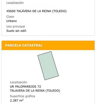 Deja de perder el tiempo mirando parcelas que no valen ni la mitad de lo que prometen. Aquí tienes UNA OPORTUNIDAD REAL: 2.387 m² de terreno urbano en la Urbanización Palomarejos, a solo 13 minutos de Talavera de la Reina, rodeado de casas, con servicios, buen acceso y -atención- fachada a DOS calles. Terreno cuadrado, limpio, aprovechable. Nada de lotes ridículos ni suelos que te obliguen a renunciar a tu proyecto. Este terreno es para quien quiere avanzar YA, no para quien se pasa la vida pensando. Y si lo que quieres es levantar tu casa sin dolores de cabeza: nosotros te la construimos. Porque no hacemos obra tradicional lenta y sucia: Hacemos construcción industrializada. Rápida, precisa y técnicamente impecable. ✔️ Ejecución exprés sin eternizar la obra. ✔️ Cero improvisaciones: precisión industrial en cada milímetro. ✔️ Estructuras a medida, ingeniería real, no cuentos. ✔️ Envolventes térmicas de alto rendimiento para que tu casa sea eficiente desde el día uno. ✔️ Obra limpia, sin el circo habitual de materiales, retrasos y chapuzas. ¿Quieres la parcela? La tienes. ¿Quieres tu casa? Te la hacemos. ¿Quieres seguridad técnica y un proyecto sin sorpresas? Aquí está. Si de verdad buscas una oportunidad, esta es. Si sigues dudando, no es para ti.