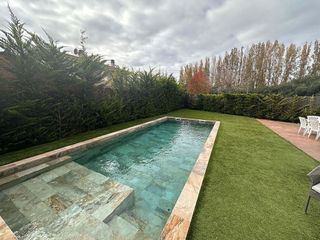 **Casa unifamiliar moderna con piscina privada en venta** Descubre esta espectacular casa unifamiliar ubicada en una zona tranquila, ideal para disfrutar de la vida en familia. Con una superficie construida de 180 m² y un terreno de 420 m², este chalet adosado ofrece un estilo moderno y funcional que se adapta a todas tus necesidades. La vivienda cuenta con 4 dormitorios, de los cuales 3 son dobles y 1 individual, perfectos para descansar y recargar energías. Además, dispone de 3 baños bien equipados, garantizando comodidad para todos los miembros del hogar. El exterior es un verdadero oasis: relájate en la piscina privada o disfruta del amplio jardín, perfecto para organizar reuniones al aire libre. La propiedad también incluye un parking con espacio para dos coches, lo que añade un plus de comodidad. Construida en 2002 y en buen estado, la casa está equipada con calefacción mediante bomba de frío/calor y es apta para personas con movilidad reducida, asegurando accesibilidad para todos. Con armarios empotrados y un trastero, tendrás espacio de sobra para almacenar todo lo que necesites. La orientación sur permite que la luz natural inunde cada rincón de la vivienda, creando un ambiente cálido y acogedor. No pierdas la oportunidad de vivir en este encantador hogar que combina modernidad, confort y tranquilidad. ¡Contáctanos para más información y ven a visitarla!
