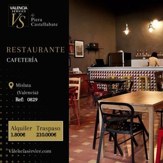 *Fotos ficticias para la privacidad del cliente. Cafetería-bar muy bonita y acogedor en zona residencial, barrio de Algiros entre Ayora y el Cabañal. Local reformado con gusto, totalmente equipado y en plena actividad y listo para seguir trabajando. Tiene clientela fija y buena facturación. Buen aforo interior y exterior con terracita muy bonita. Trabaja con desayunos, almuerzos, menús, meriendas y tardeos. Tiene mucho potencial. Salida de humos: a la calle Metros cuadrados :75 Aforo: 50 personas Terraza: 24 personas Alquiler: 1.000 € Traspaso: 45.000 € WhatsApp: +34691484113