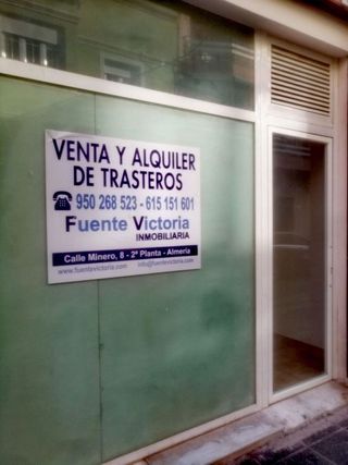 Tenemos la solución a sus problemas de espacio. INMOBILIARIA FUENTEVICTORIA vende 2 TRASTEROS, con acceso directo desde la calle. Trasteros con distintas superficies, situados en calle san Lorenzo, nº 9, Almería. No pierda la oportunidad de tener un trastero y olvidarse de todas las cosas de las que no se quiere deshacer. Precio desde 11.500 €, llámenos y concertamos una visita sin compromiso.