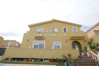 Maravilloso chalet pareado en La Almajada - listo para entrar a vivir Presentamos esta espectacular vivienda pareada ubicada en la prestigiosa urbanización privada Jardines de Muchamiel. Totalmente reformada, construida en tres plantas y con una superficie de 260 m² sobre parcela independiente de 311 m², ofrece un equilibrio perfecto entre comodidad, privacidad y calidad de vida. Disfrutarás de un amplio jardín privado con barbacoa, pérgola de madera y acceso directo a la piscina y zonas comunes, ideal para reuniones familiares y ocio al aire libre durante todo el año. Distribución Planta baja Luminoso salón-comedor con salida directa al jardín. Cocina reformada con lavadero independiente y acceso a la zona de barbacoa. Ventanales con cristal y persiana de seguridad, carpintería de aluminio con rotura de puente térmico. Dormitorio o despacho y baño completo. Primera planta Cuatro dormitorios y dos baños, uno de ellos en suite con terraza ampliada. Sótano Espacio diseñado a medida con trastero y zona multiuso, perfecto como sala de juegos, gimnasio o estudio. Reformas y equipamiento Placas solares y calefacción de gas natural. Persianas y toldos motorizados. Suelos renovados en planta baja. Barbacoa con barra y cerramiento acristalado para uso durante todo el año. Tragaluz en escalera y mejoras en iluminación y aislamiento. Urbanización "Jardines de Muchamiel" Dos piscinas comunitarias. Pista de pádel y pista polideportiva. Amplias zonas verdes y parque infantil. Vivienda situada en el anillo interior: mayor seguridad, privacidad y mejores vistas. Ubicación Un entorno residencial tranquilo, familiar y exclusivo, excelentemente conectado con San Juan, la playa y Alicante, con todos los servicios a un paso. Una oportunidad única de vivir con calidad, espacio y confort en una de las zonas más demandadas. ¡Ven a descubrir tu próximo hogar!