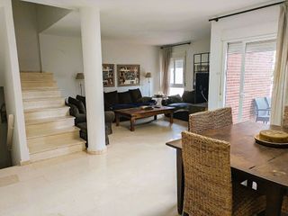 Adosado en venta en Mutxamel con urbanización, ¡no te pierdas ningún detalle! Ubicado en Mutxamel, este adosado cuenta con tres alturas y sótano. En la planta baja se encuentra la cocina completa con despensa y un amplio salón comedor con chimenea de leña de obra. En la planta baja encontramos además un aseo de servicio. En la planta primera se encuentran tres habitaciones y un cuarto de baño completo con bañera. Finalmente, en la segunda planta se ubica una buhardilla dispuesta como cuarta habitación con split de aire acondicionado que da paso a una terraza solarium. En total tiene 169 metros construidos. Este adosado cuenta con armarios empotrados forrados y split de aire acondicionado. Además, el sótano se ha dispuesto como loft y cuenta con su propia cocina, zona de estar y descanso y un cuarto de baño con ducha. Además tiene salida al patio con zona de barbacoa. La vivienda cuenta con dos trasteros ubicados en el sótano, así que el almacenaje no será un problema. Tiene sistema de ultrafiltración de agua, paredes lisas y rejas en ventanas. En la zona comunitaria se encuentra la piscina, perfecta para un chapuzón en los meses más calurosos. Se entrega pintada de blanco, con puertas restauradas y cocina nueva a cambiar cuando haya cliente comprador. ¿A qué esperas para visitarlo? ¡Llámanos ya y concretamos una cita! Dirección aproximada. Este anuncio puede contener errores y se muestra a título informativo sin valor contractual.