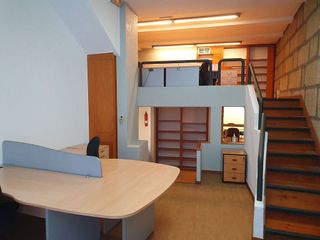 En la calle Mª Auxiliadora tenemos este bajo que se distribuye en dos entreplantas, con los que nos da opción a distintos puestos de trabajo en ambientes distintos, sin mamparas físicas. En la parte alta, se encuentran 4 puestos de trabajo en una gran mesa conjunta. En la planta baja nos encontramos con dos puesto de trabajo más y bajando cuatro escalones, tenemos un puesto de trabajo más, una sala de juntas, un aseo y un gran archivo/trastero. La oficina se encuentra totalmente amueblada, con instalación de bomba de calor/frío e instalación de red para comunicaciones informáticas. Se trata de un local ideal para una empresa o para compartir con varios socios en formato coworking.