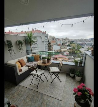 Presentamos esta vivienda, toda exterior y con vistas a la ría en casi todas sus estancias, se distribuye en 3 habitaciones, 1 baño, 1 aseo, cocina y salón con acceso a una terraza con una espectacular panorámica de la ría. En sus más de 85 metros nos encontramos nada más entrar con la cocina, completamente equipada (microondas, horno, lavavajillas, combi, TV anclada y una mesita extensible). La cocina, al igual que los dos baños, está reformada desde el 2015 incluyendo toda la parte de la fontanería. Toda la instalación eléctrica de la casa esta igualmente cambiada desde el mismo año. Del salón, amueblado, cabe destacar el chaise-longue con asientos deslizantes desde el que poder ver la TV pantalla plana de 45", y el mueble principal, empotrado a la pared y hecho a medida con múltiples huecos en los que poder tanto almacenar como decorar la que se convertirá en tu estancia favorita. Desde aquí tenemos paso a la terraza principal de la vivienda, en la que poder almorzar viendo la ría de Vigo o disfrutar tomando el sol. De las tres habitaciones, una de ella está ahora mismo destinada a despacho aunque tiene un sofá-cama por que lo que se puede convertir fácilmente en dormitorio. Las otras dos habitaciones tienen la misma orientación que la terraza, y la principal tiene una galería cerrada que, aunque ahora mismo se utilice como zona de secadora y planchado de ropa también se puede transformar dicho uso al gusto y necesidades de cada uno. Otros datos interesantes de la vivienda: - Garaje en el edificio, no comunicado con ascensor. - Trastero. - Calefacción y termo eléctrico estrenado hace 6 años. Todas las ventanas de la vivienda están reforzadas por lo que el consumo energético es muy eficiente. - 1 baño completo y 1 aseo. Seguro de impagos y comunidad incluidas. Se ubica en una de las zonas con más servicios de la ciudad. Supermercados, cafeterías, ferreterías, farmacia 24h, Centro Comercial.. . todo ello en un radio de menos de 50 metros del portal. Ademá