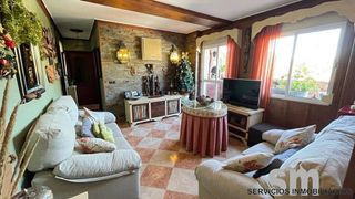 Es una casa pareada de tres plantas. En el sótano, a pie de calle, cuenta con un amplio garaje de 60 m². En la primera planta, hay un salón, una cocina y un dormitorio. La planta superior dispone de tres dormitorios, dos baños y una gran terraza con vistas impresionantes tanto al pueblo como a la sierra. nnPor su orientación al sur, recibe mucha luz natural durante todo el día, lo que la hace muy luminosa. La construcción es excelente y está lista para entrar a vivir. Además, tiene dos grandes ventajas: el garaje y un dormitorio adicional. nnSu ubicación es muy buena, cerca del centro y con fácil salida del pueblo, lo que la hace muy conveniente para desplazarse.