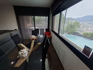 Presentamos esta fantástica vivienda con una superficie gráfica de 493 m2 y 234 m2 construidos, situada en una finca del año 1977, rodeada de naturaleza y con total privacidad. Accedemos desde la calle a un parking con capacidad para dos vehículos. Para entrar a la vivienda, subimos unas escaleras que nos conducen a la planta principal, donde un amplio distribuidor organiza el acceso tanto a esta planta como a la planta superior. En la primera planta encontramos: Dos habitaciones dobles Baño completo con plato de ducha Salón amplio y muy luminoso, equipado con aire acondicionado y bomba de frío/calor, además de tiro de chimenea Cocina grande con zona de comedor, muy funcional, con salida directa al exterior Desde la cocina y el salón se accede a una gran terraza que rodea la vivienda, con zona de barbacoa y lavadero, perfecta para disfrutar del exterior. Desde esta terraza, unas escaleras nos llevan a la zona de piscina de agua salada, totalmente privada, sin vecinos a la vista, con vistas abiertas a la montaña y un trastero para almacenamiento. Un entorno ideal para quienes buscan tranquilidad y conexión con la naturaleza. La segunda planta, reformada íntegramente en 2008, ofrece: Sala de estudio con precioso techo abuhardillado de madera Baño completo con doble lavabo, ducha y bañera Habitación doble tipo suite con vestidor Extras y equipamiento: Caldera nueva (1 año) Placas solares de 5,5 kW Descalcificador Sistema Murprotec de control de humedad y condensación mediante Central de Tratamiento de Aire Ventanas Climalit con rotura de puente térmico Ventanas oscilobatientes Una vivienda muy completa, cómoda y eficiente, ideal para familias que buscan espacio, privacidad y un entorno natural privilegiado, sin renunciar a las comodidades modernas. Aviso legal y condiciones generales de información: Toda la información contenida en este anuncio tiene carácter orientativo y carece de validez contractual. Los datos relativos a superficies, precios, ca