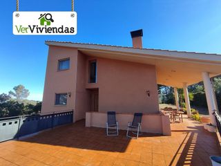 Magnífica casa independiente en Els Pinars (Vallirana) con vistas abiertas En la tranquila urbanización de Els Pinars, en Vallirana, se encuentra esta excelente vivienda a cuatro vientos, construida en 2002, con aproximadamente 278 m² construidos sobre una amplia parcela de 941 m². Una propiedad luminosa, soleada todo el día y rodeada de naturaleza, ideal para quienes buscan espacio, privacidad y calidad de vida sin renunciar a la cercanía de Barcelona. Distribución funcional en tres plantas Planta principal (acceso) Amplio garaje cerrado de unos 95 m² con puerta automática y capacidad para 4 vehículos, además de zona de almacenaje y gran altura. Esta casa dispone de algo totalmente excepcional que las demás casas de la zona no tienen, que es el hecho de poder acceder con el vehículo hasta la parte alta del terreno a pie de la puerta de la cocina. Lo que otorga una gran comodidad cuando vienes cargado del Centro comercial. También hay que decir que en la parte alta del terreno, la parte trasera de la vivienda, hay espacio para colocar tranquilamente y sin ningún tipo de problema, entre 5 y 6 vehículos más. Planta -1 (zona de dia) Espacioso salón-comedor de unos 60 m² con chimenea y salida directa a un gran porche cubierto con barbacoa y al jardín, 1 aseo y una amplia cocina office totalmente equipada, también con acceso al exterior mediante zona despensa -lavadero, creando una conexión cómoda con la zona de jardín. Planta -2 (zona de día) Dispone de cuatro amplias habitaciones dobles, incluida una suite con baño completo privado y un gran vestidor,además de un segundo baño completo. En esta planta encontramos también en una de las habitaciones que da a una gran terraza con espectaculares vistas de la zona. Exterior para disfrutar todo el año La parcela, prácticamente llana y muy soleada, cuenta con un gran espacio para poder construir la piscina de tus sueños, porche ideal para comidas al aire libre, zona de barbacoa y grandes vistas al horizonte que aportan tranqui