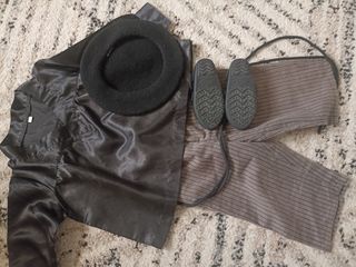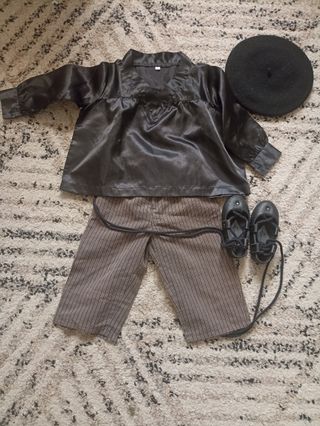 Conjunto de ropa tradicional para niño. Baseritar jantzia traje casero. Talla 0, vale hasta los dos años - Camisa negra satinada. - Pantalón de rayas. Tiene la marca del dobladillo - Boina negra. - albarcas talla 22 como nuevas